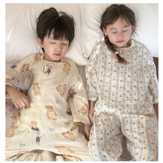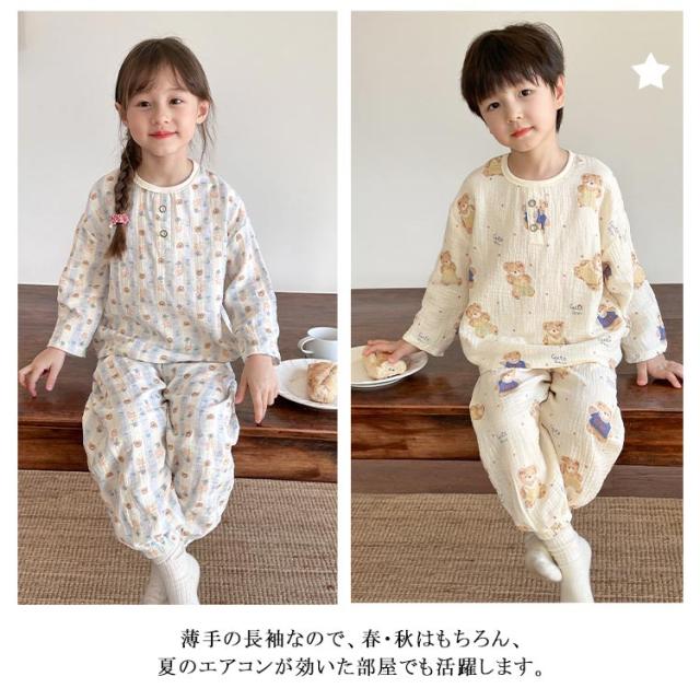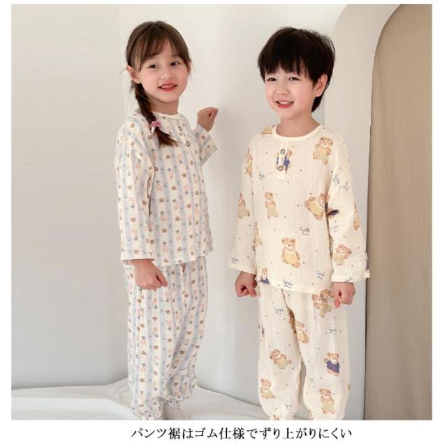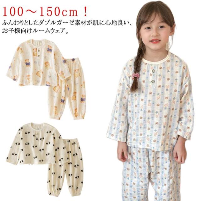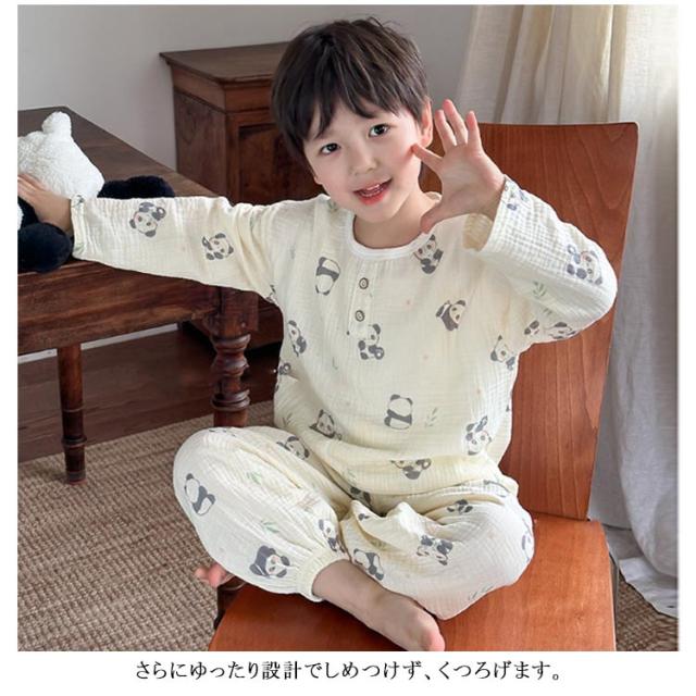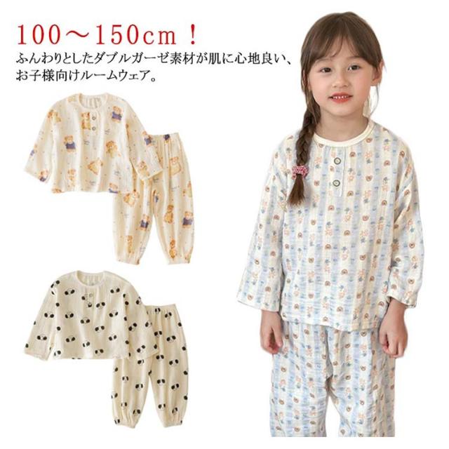 男の子 110 ダブルガーゼ 長袖 綿 女の子 秋 100 春 部屋着 夏 ルームウェア キッズ くま 120 130 パジャマ 150 子供 ジュニア 140 ユニセックス 犬 パンダ 小学生 花柄 かわいい おしゃれ 修学旅行