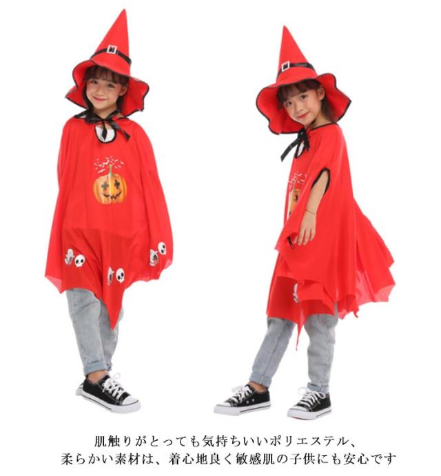 コスプレ ハロウィン 子供 レッド カボチャ マント 魔法使い ポンチョ とんがり帽子 ハロウィン 魔女 衣装 魔法師 かぼちゃ 文化祭 赤 ブラック 黒 キッズ イベント 巫女 パーティ 学園祭 仮装 コスチューム ステージ衣装