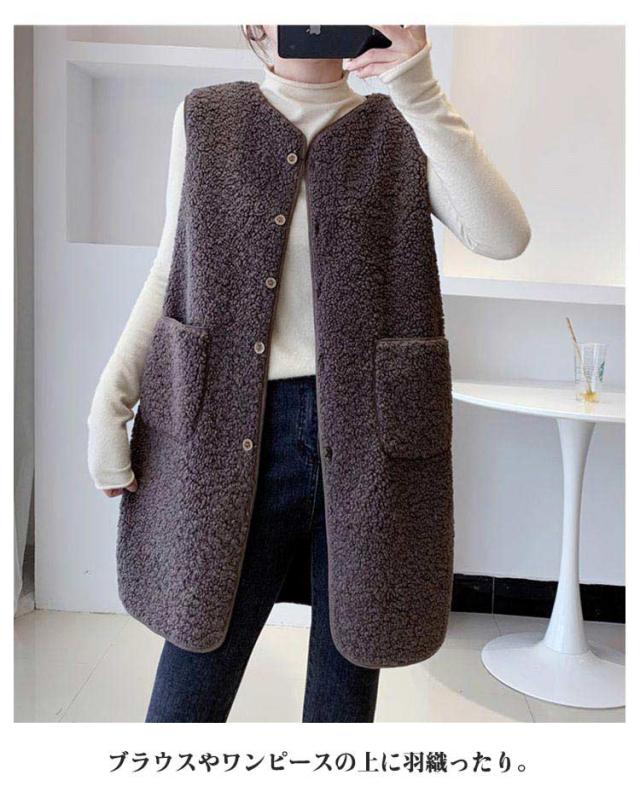 チョッキ レディース ボアベスト アウター ジレ ベスト 冬 ジレ ボアジャケット コート 春 ロングベスト 秋 前開き ボア ロング丈 トップス ノースリーブ フリースジャケット フリース フリース 保温 防寒 もこもこ ふわふわ 大きいサイズ