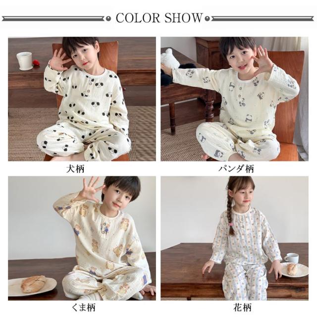 女の子 ルームウェア 男の子 キッズ 140 100 長袖 130 部屋着 春 夏 110 秋 ダブルガーゼ 120 パジャマ パジャマ 150 子供 ジュニア 小学生 ユニセックス 犬 パンダ くま 花柄 かわいい おしゃれ 修学旅行