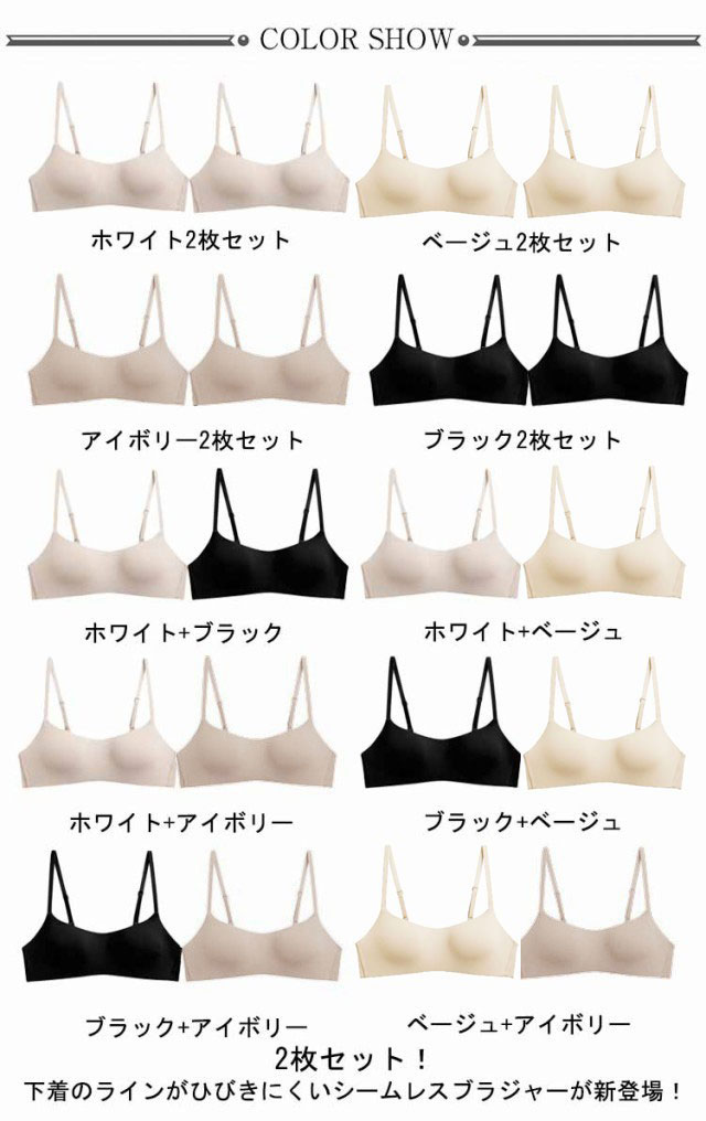 ノンワイヤーブラ かわいい シームレスブラ ブラジャー 【2枚セット】 締め付けない 【2枚セット】 補正ブラ 脇肉対策 脇高 痛くない 無縫製ブラ レディース 下着 インナー 無地 おしゃれ 響きにくい 通気性