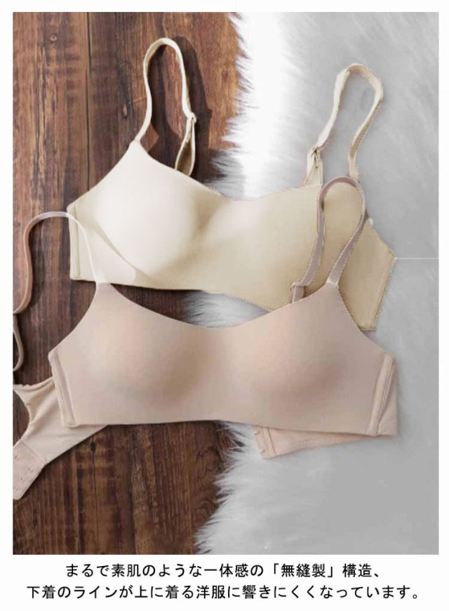 | 2枚セット!下着のラインがひびきにくいシームレスブラジャーが新登場! 伸縮性に優れたなめらかな素材で、締め付けることなくフィット。 ノンワイヤーで締め付け感がないのにしっかりホールドし、脇高設計でバストの横流れをストップしてくれます。 まるで素肌のような一体感の「無縫製」構造、下着のラインが上に着る洋服に響きにくくなっています。 通気性がよく、蒸れにくいので快適にご着用いただけます。 | |