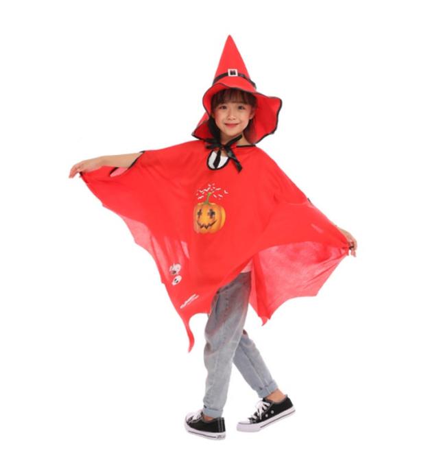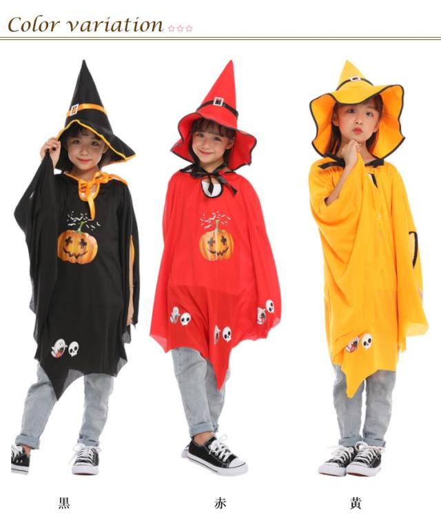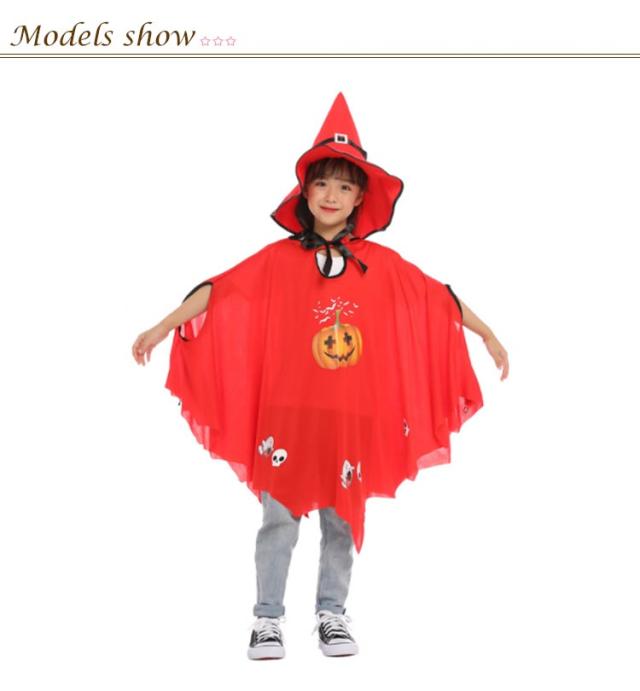 マント 仮装 とんがり帽子 衣装 魔法師 カボチャ 巫女 かぼちゃ 子供 コスプレ衣装 ハロウィン ポンチョ ハロウィン 魔法使い 魔女 赤 ブラック レッド キッズ イベント 黒 パーティ 学園祭 文化祭 コスチューム ステージ衣装
