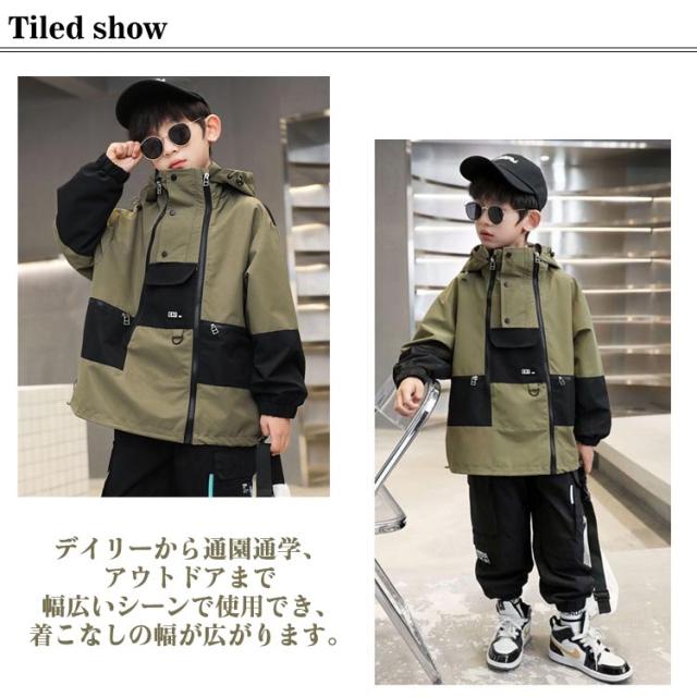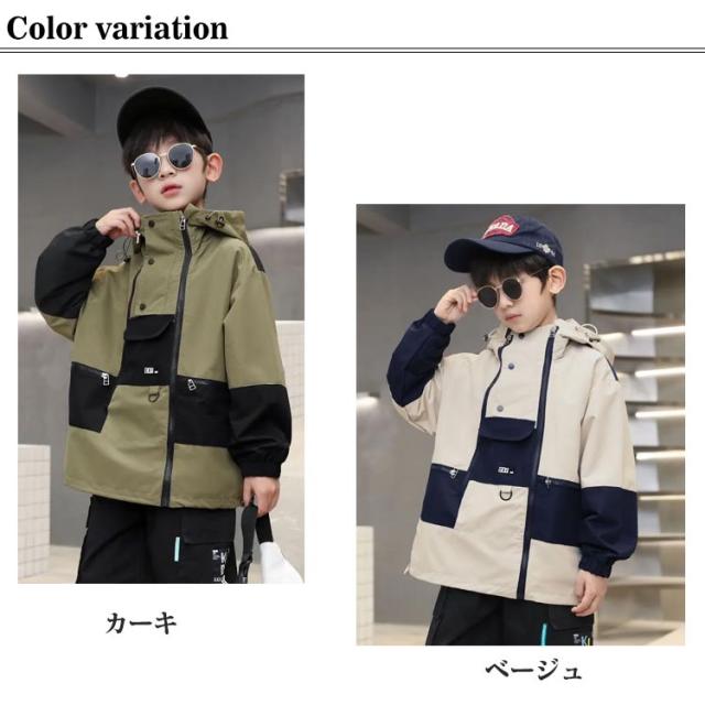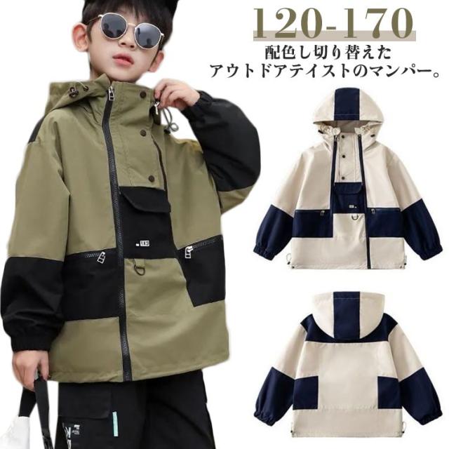 バイカラー 男の子 こども服 ジャケット コート アウター ウインドブレーカー ジュニア 小学生 春秋 おしゃれ マウンテンパーカーキッズ ジップパーカー ジャンパー ジップアップ バイカラー 羽織り 防風 トップス フード付き スポーツ