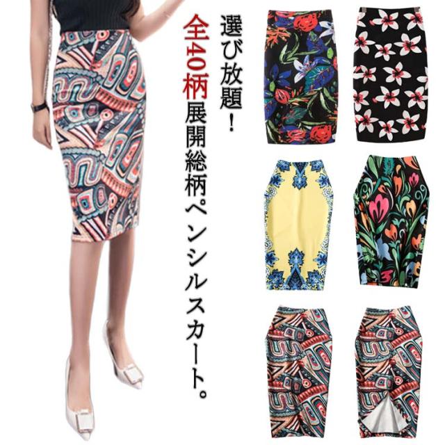 花柄 全40柄×5サイズ レディース スカート スカート ペンシルスカート タイトスカート ペンシルスカート ミディアム丈 タイトスカート ひざ丈 伸縮性 のびる 全40柄×5サイズ オフィスカジュアル ハイウェストスカート 春秋