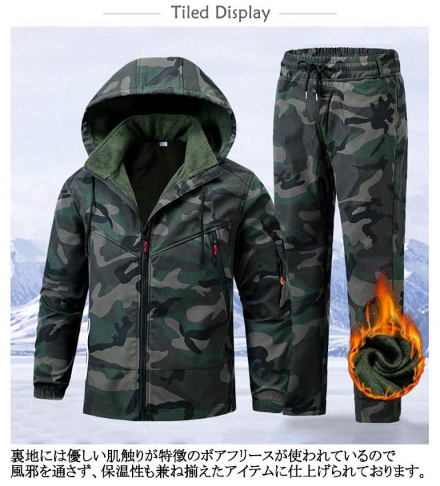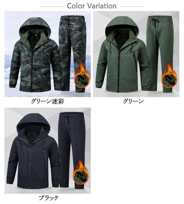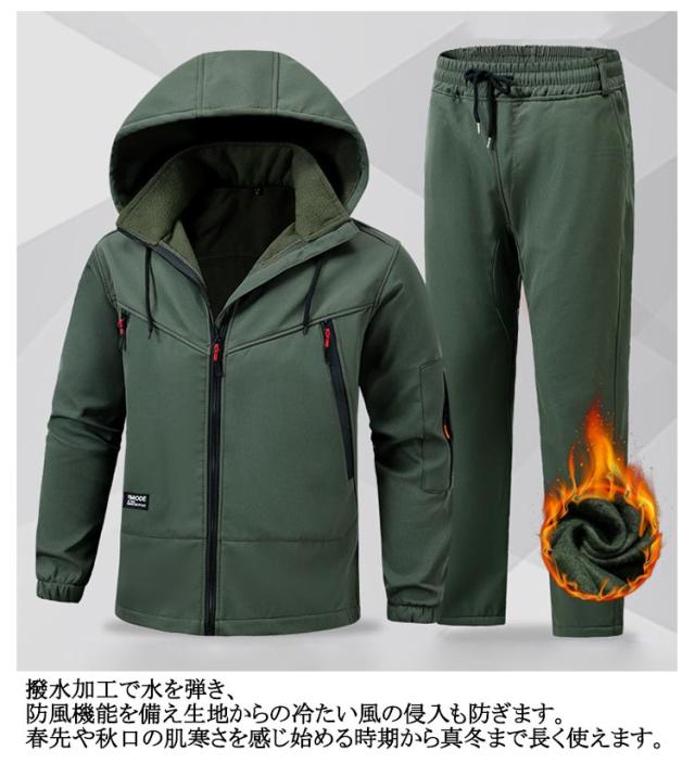 | マウンテンジャケット&ワークパンツ 上下2点セット。 裏地には優しい肌触りが特徴のボアフリースが使われているので風邪を通さず、保温性も兼ね揃えたアイテムに仕上げられております。 撥水加工で水を弾き、防風機能を備え生地からの冷たい風の侵入も防ぎます。 春先や秋口の肌寒さを感じ始める時期から真冬まで長く使えます。 防風加工で風の侵入を防ぎます。 裏起毛でしっかり暖か、釣り、登山などアウトドアスポーツや屋外作業に最適! トレッキング、釣り、登山、山ガール、ウォーキング、バイクツーリング、キャンプ、サイクリング、ゴルフなど、様々なアウトドアシーンに着用できます。 | |