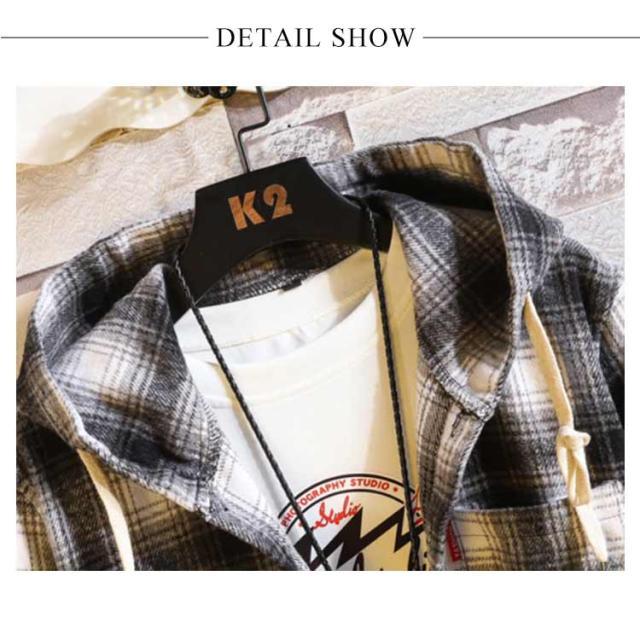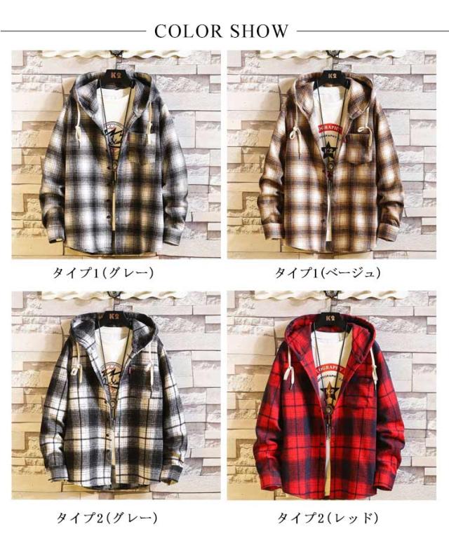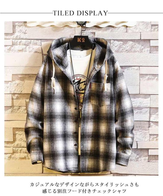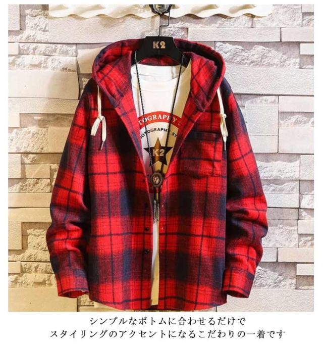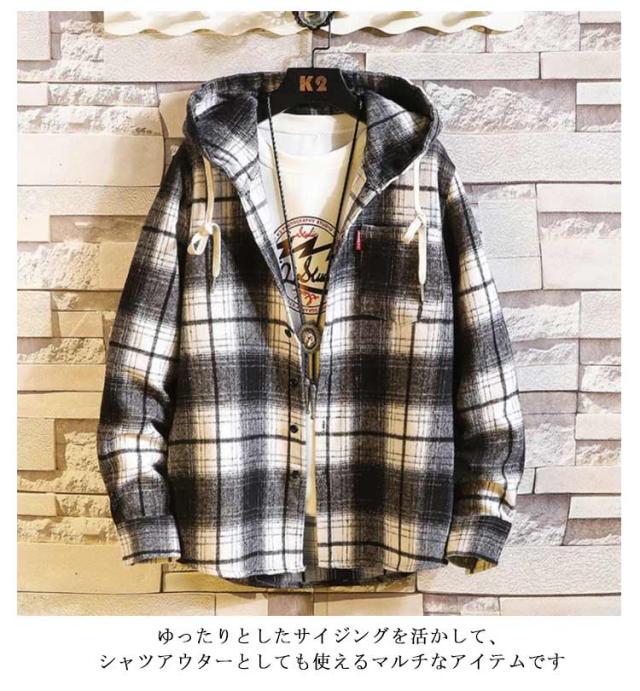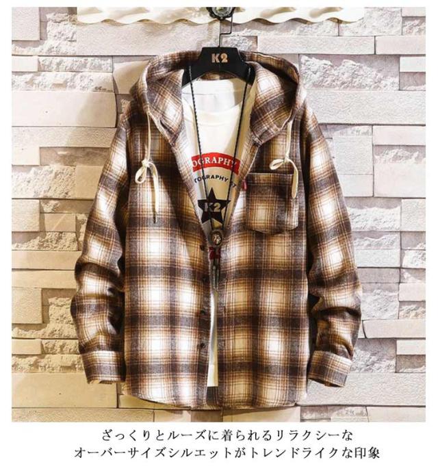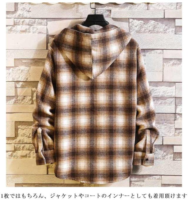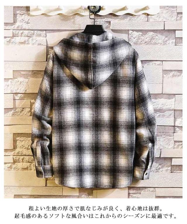 秋物 長袖シャツ メンズ チェックシャツ フード付き ネルシャツ 暖かい 秋服 秋 起毛 厚手 カジュアルシャツ 柄シャツ 羽織り フードシャツ ボタン パーカー 冬 春服 ネルシャツ 起毛シャツ ゆったり ストリート オシャレ