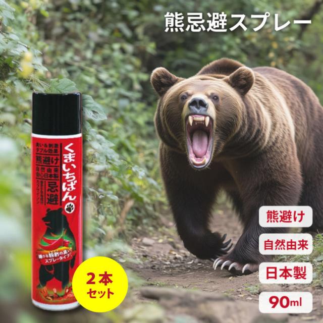 [三太郎の日P10倍!] 【強力な臭い(籾酢)と刺激(カプサイシン)のダブル効果で忌避!】日本製 天然成分 コンパクト クマ除けスプレー 熊避け くまいちばん 90ml 2本セット アウトドア レジャー ソロキャンプ 釣り 登山 バーベキュー お守り 登山