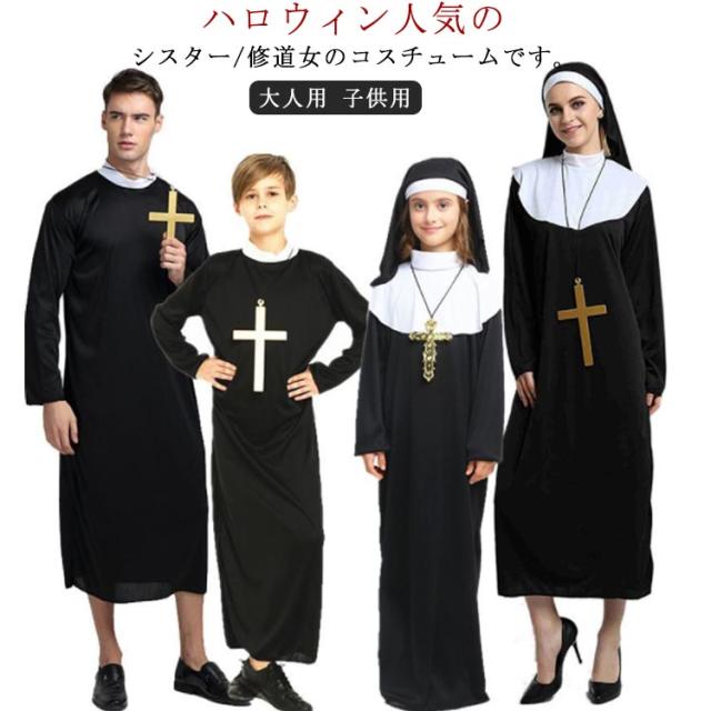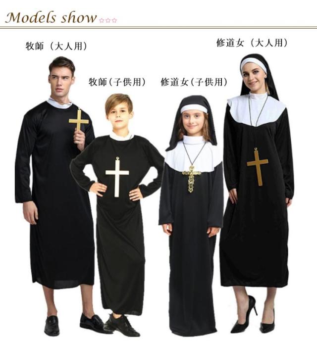 ハロウィン コスプレ 衣装 牧師 修道女 修道士 聖女 祭司 シスター 変装 仮装 クルス 大人用 子供用 キッズ メンズ レディース 男の子 女の子 宣教師 マリア 聖歌隊 教会用 ハロウィン衣装 コスチューム コスプレ衣装 パーティー イベント