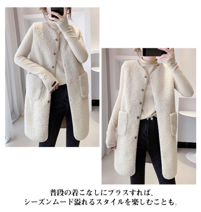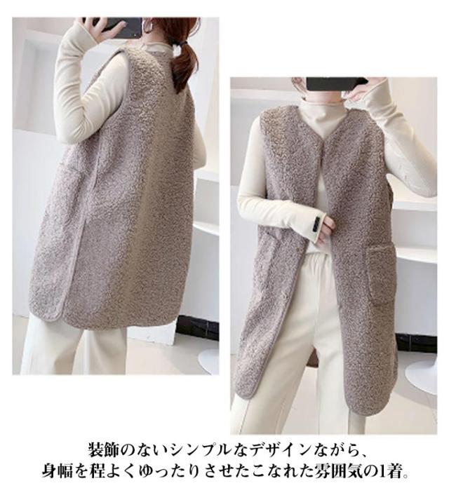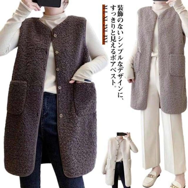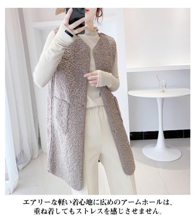 ベスト ボアベスト ボア ジレベスト レディース もこもこ 秋冬 前開き アウター ムートン ベスト ジレ ノーカラー ノースリーブ ジャケット ファーベスト ロングベスト レイヤード 重ね着 無地 秋 冬 カジュアル ナチュラル