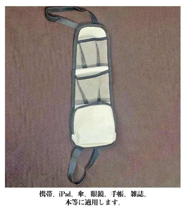 | ドライブが楽しくなるおしゃれなマルチカーポケットです。 携帯、iPad、傘、眼鏡、手帳、雑誌、本等に適用します。 車内をすっきりと整理することが出来る、便利なシートバックポケット。 ヘッドレストのパイプに掛ければOKです。取り付けがとても簡単です。 上品なカラーになっているので、車内インテリアとしても役立ちます。 | |