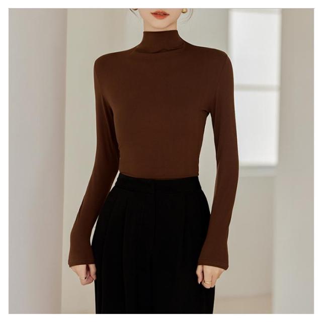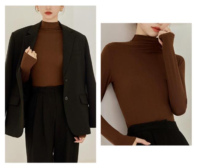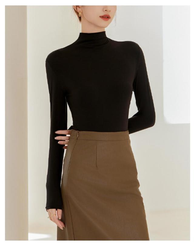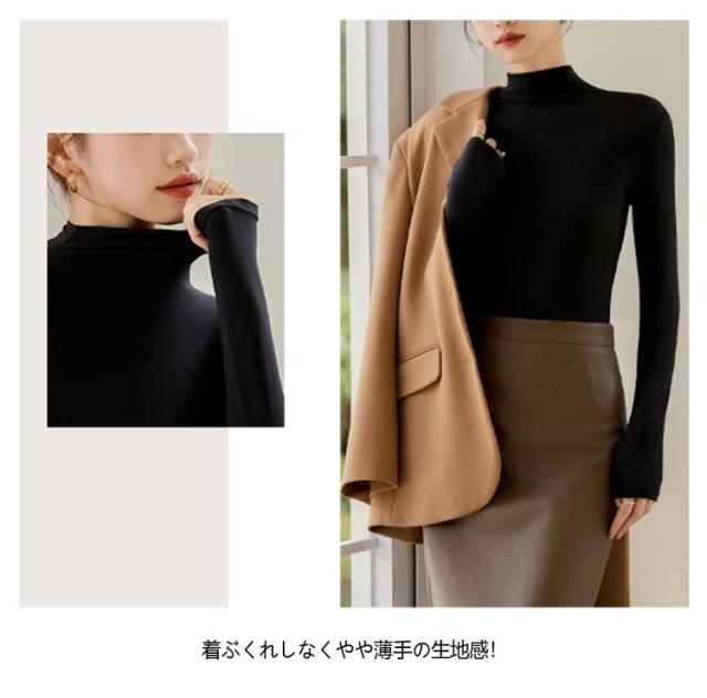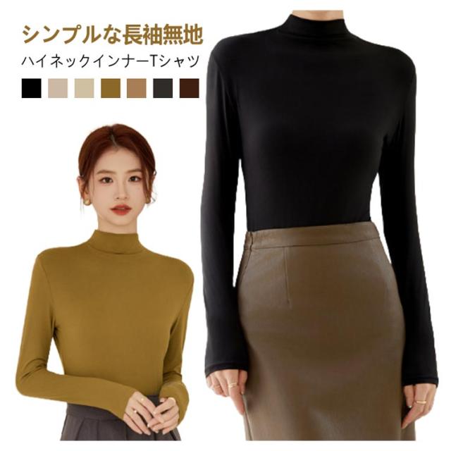 2枚セット!ハイネック Tシャツ レディース カットソー 長袖 トップス 春秋冬 tシャツ レイヤード 重ね着 インナー タートルネック シンプル 無地 ストレッチ カットソー 女性用 おしゃれ tシャツ 体型カバー 送料無料 黒 ブラック 大きいサイズ M L XL