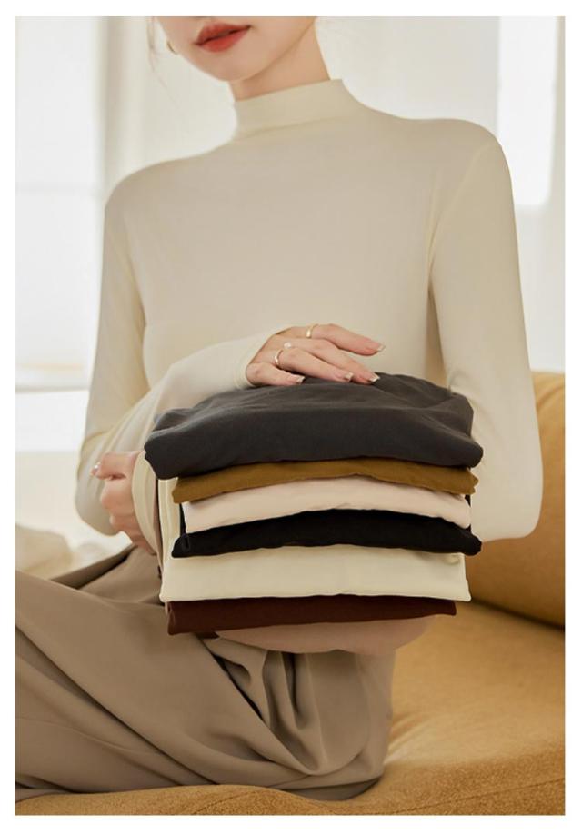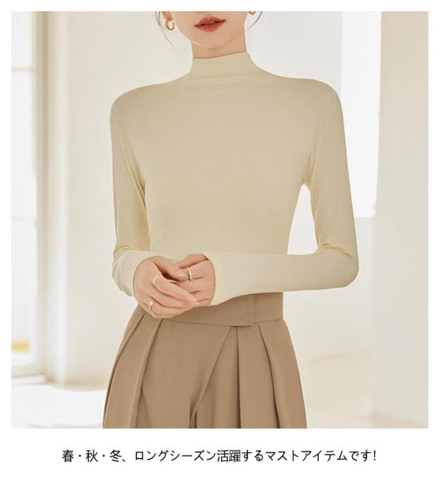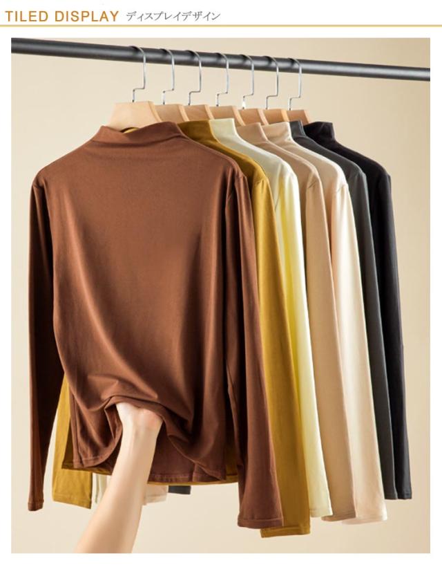| シンプルな長袖無地ハイネックインナーTシャツ。 重ね着スタイルのインナーとしてはばっちりな一枚! 着ぶくれしなくやや薄手の生地感! ストレッチ性に優れた生地を使用し、着心地楽チン! 春・秋・冬、ロングシーズン活躍するマストアイテムです! | |