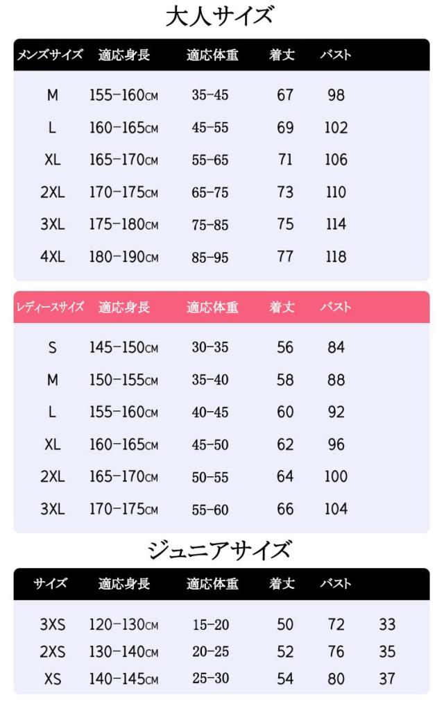 | サイズ | 3XS 2XS XS S M L XL 2XL 3XL 4XL |