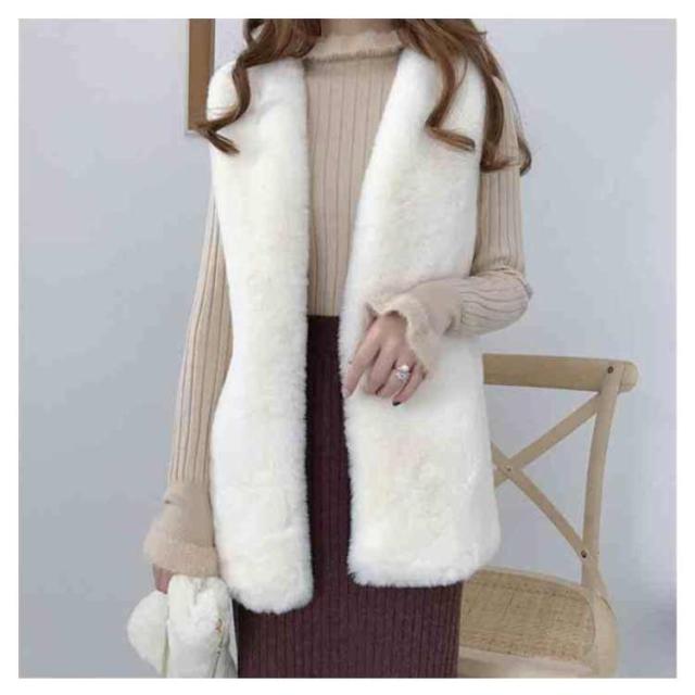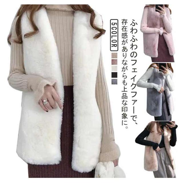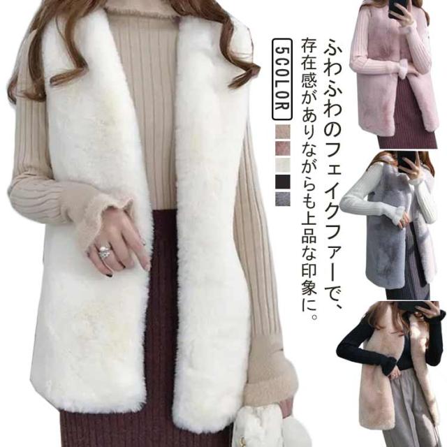 ファーベスト 秋冬 レディース フェイクファーベスト コート アウター ノーカラー 羽織り 秋 冬 ボアベスト ジレ ロングベスト 羽織り 前開き ジャケット もこもこ トップス ノースリーブ ボリューム おしゃれ
