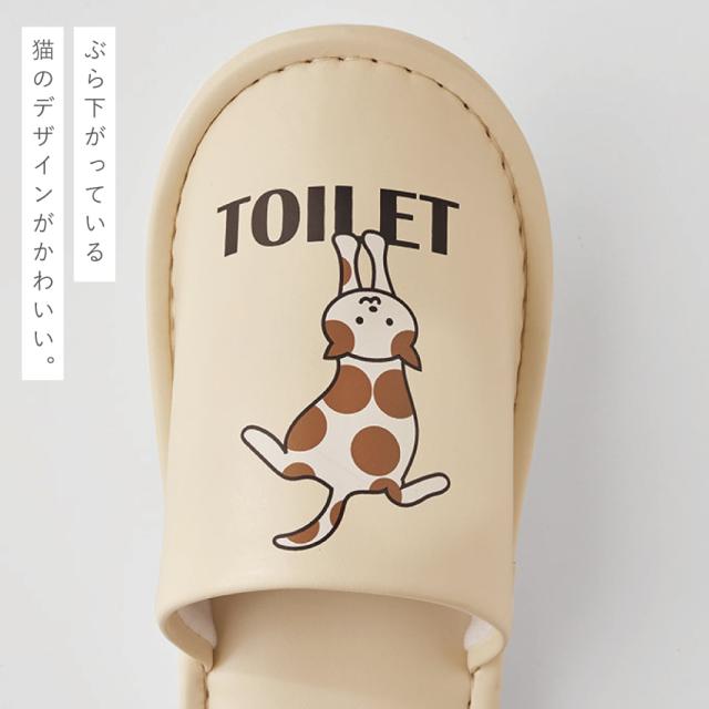 トイレスリッパ 拭ける 猫 ベージュ おしゃれ 23-27cm 大きい トイレ用スリッパ トイレ スリッパ 合皮 サッと拭けるトイレスリッパ ぶら下がりにゃんこ