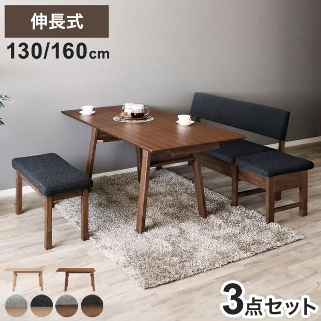 ダイニングセット 3点セット 130cm伸長テーブル 130cm伸長チェア 80cmベンチ リビング ダイニング ダイニングテーブル ダイニングチェア おしゃれ 新生活(代引不可)【送料無料】