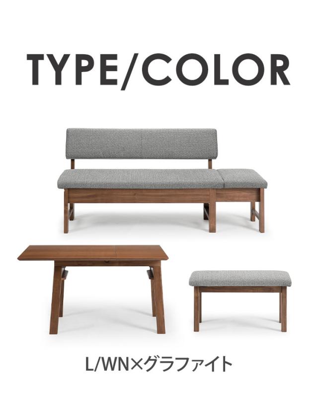 伸長テーブル/幅130~160cm | 伸長チェア/幅110~142cm | 伸長チェア/幅130~162cm | カウチ/幅139cm | ベンチ/幅81cm |