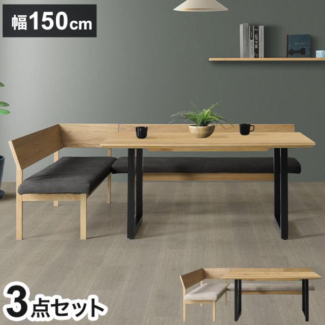 ダイニングセット オーク 3点セット 150cmテーブル 160cmチェア 160cmカウチ リビング ダイニングテーブル ダイニングチェア おしゃれ 新生活(代引不可)【送料無料】