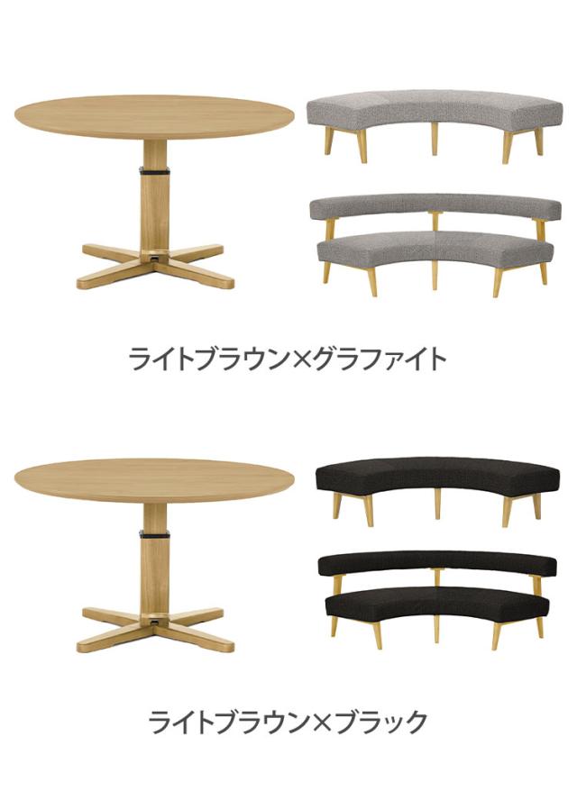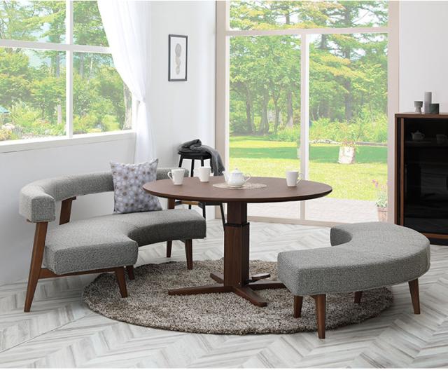 ダイニングセット 3点セット 昇降テーブル ラウンドベンチ ラウンドチェア リビング ダイニング カフェテーブル 円形 丸テーブル おしゃれ 新生活(代引不可)【送料無料】