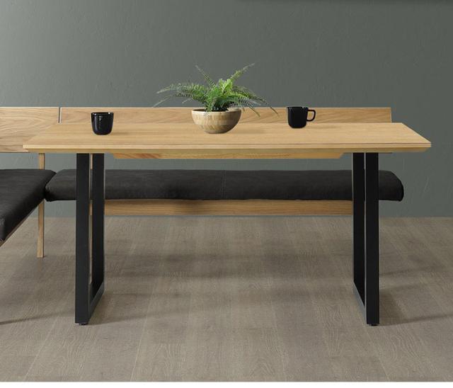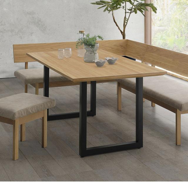 ダイニングテーブル 4人掛け 150×90cm リビングテーブル アイアン脚 脚間調節可能 モダン 北欧 おしゃれ 食卓 リビング ダイニング オーク テーブル(代引不可)【送料無料】