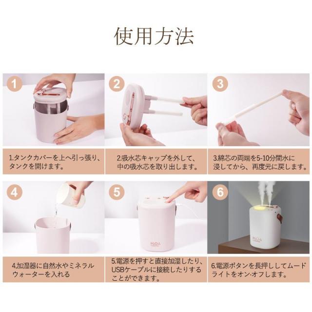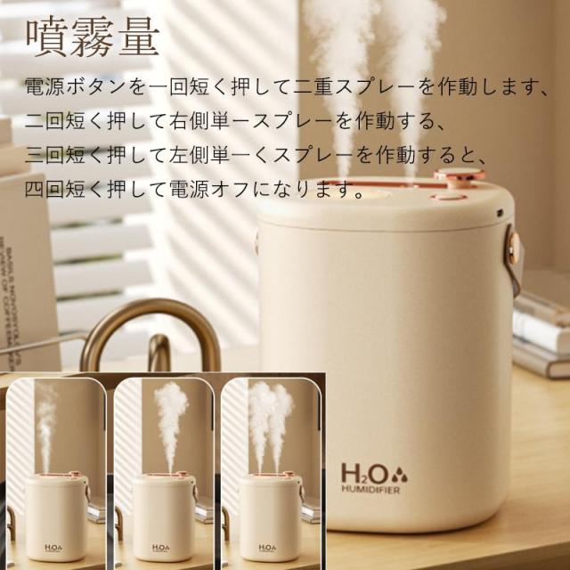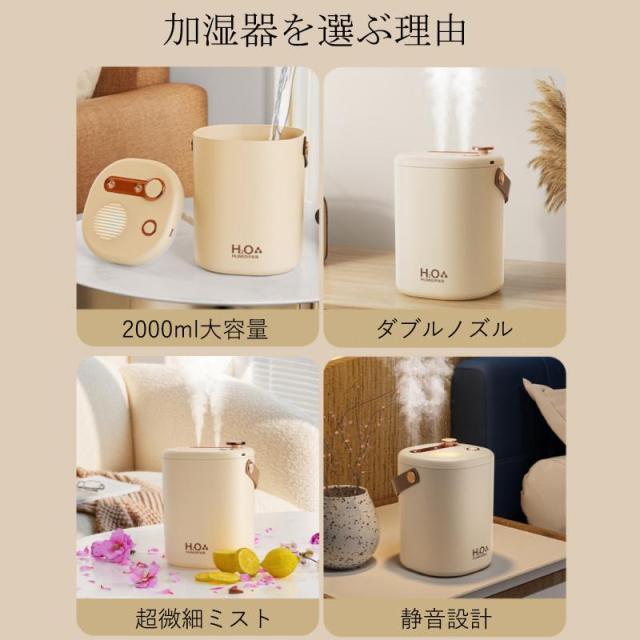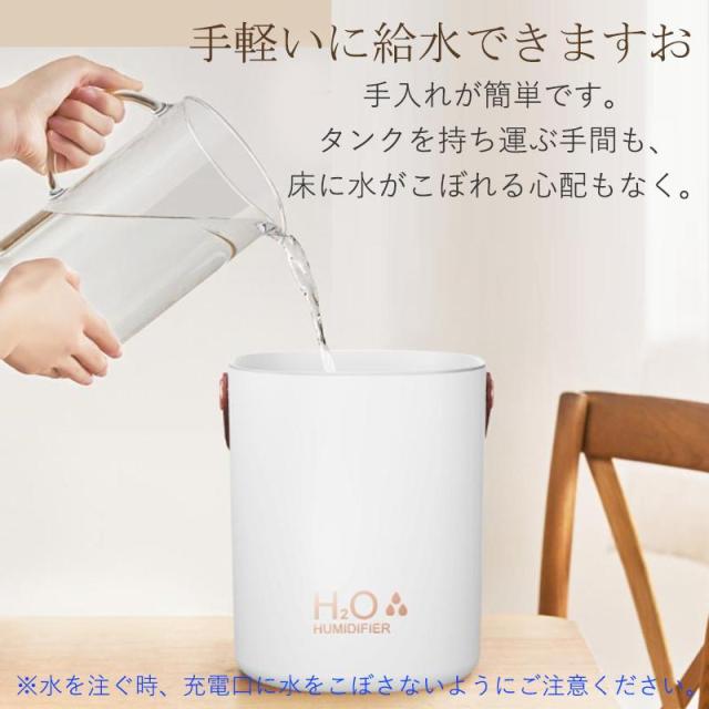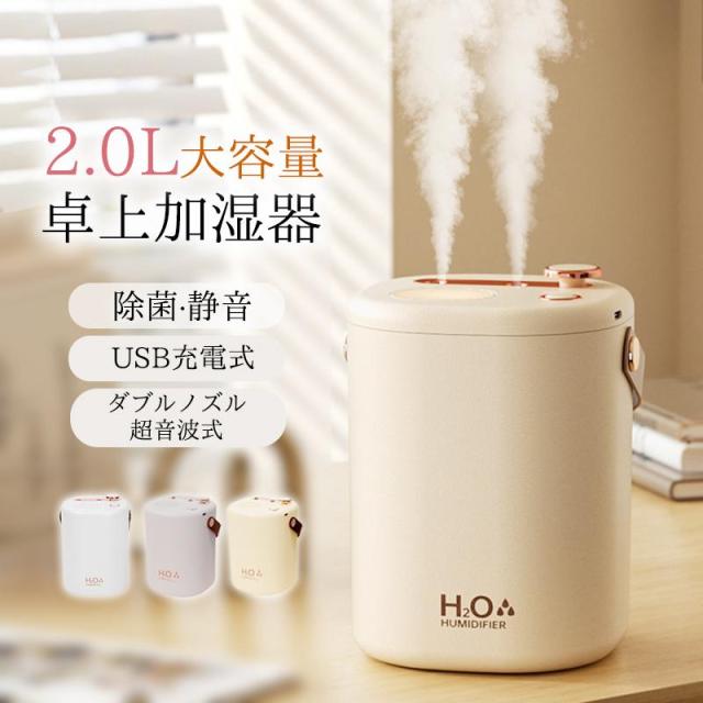 加湿器 小型 卓上 ミニ加湿器 超音波 空気清浄機 大容量 2L USB充電式 除菌 コードレス 上部給水式 オフィス 部屋 寝室 車用 乾燥対策