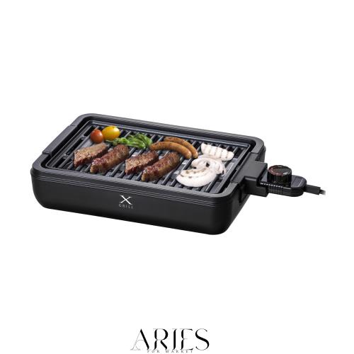 【調理中の煙を約“70”%削減(MAX230℃で試験)】 プレート裏面を、立体的な“X”の形状にすることで、油の流れを下側に集中させる事ができ、効率的に油を落とします。 お部屋の臭いも気にせず、焼肉を思う存分楽しめます。 ※減煙数値は当社ホットプレート比