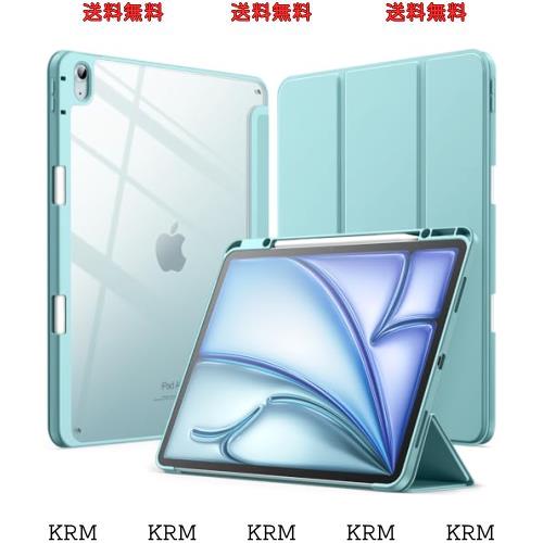 JEDirect iPad Air 13インチ M2(2024)用ケース Pencilホルダー付き 透明バックカバー スリムスタンド 衝撃吸収 タブレットカバー オートウェイク/スリープ機能