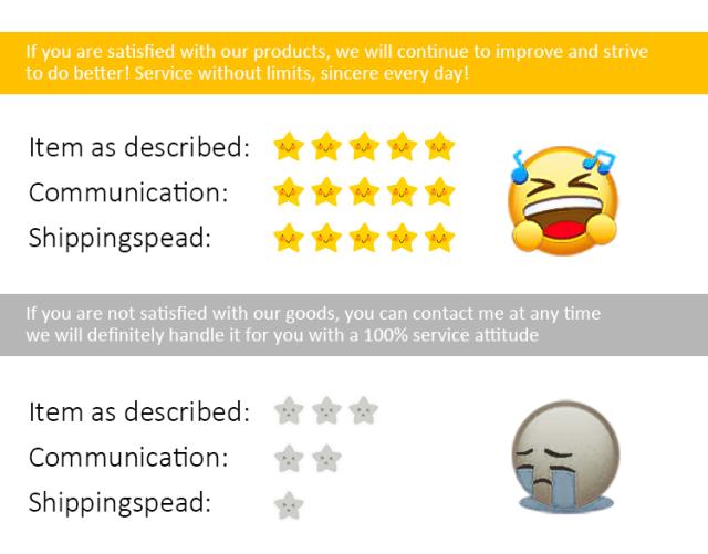 よくある質問1。 お支払い後2日以内にお届けします (休日を除く) 2. 長い間荷物を受け取っていない場合は、お気軽にお問い合わせください。私たちはあなたの商品を追跡します。 受け取ることができない場合は全額返金致しますのでご安心ください。 誤って出荷された商品については、配達後にお問い合わせください。 私たちはすべてのお金を返金するか、あなたのためにそれを再送信します。 欠陥や間違った色の製品については、写真やビデオを撮影してください。確認後、すべてのお支払いを返金するか、再送信します。 当社の製品とサービスに満足している場合は、肯定的なフィードバックと5つ星を残してください。 お知らせください。次回のご注文で割引を差し上げます。 当社の製品にご満足いただけない場合は、否定的なフィードバックを残す前にご連絡ください。 私たちは問題を解決するためにあらゆる努力をすることを保証します。 ありがとうございます。