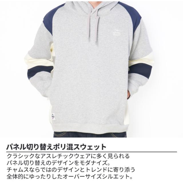 CHUMS チャムス マイトンパネルフーディ— パーカー スウェット 裏起毛 着心地 オーバーサイズ ビッグシルエット フード ワッペン パネル 切り替え ロゴ刺繍 プルオーバー フーディ CH00-1458