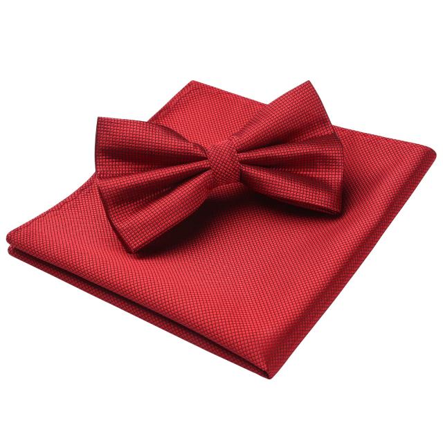 ・【パッケージ情報】ポリエステルとシルク製蝶ネクタイ:横12cm X 縦 7cm、首回りは32cm〜52cm調節可能 ┃ チーフ:31cm X 31cm。