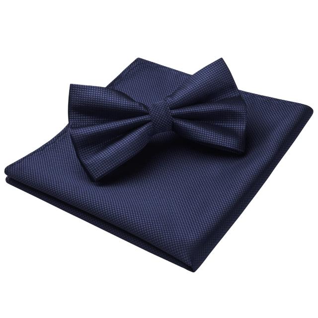 ・【パッケージ情報】ポリエステルとシルク製蝶ネクタイ:横12cm X 縦 7cm、首回りは32cm〜52cm調節可能 ┃ チーフ:31cm X 31cm。