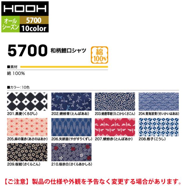 村上被服 HOOH 鳳凰 作業服 5700 和柄鯉口シャツ S-3L オールシーズン