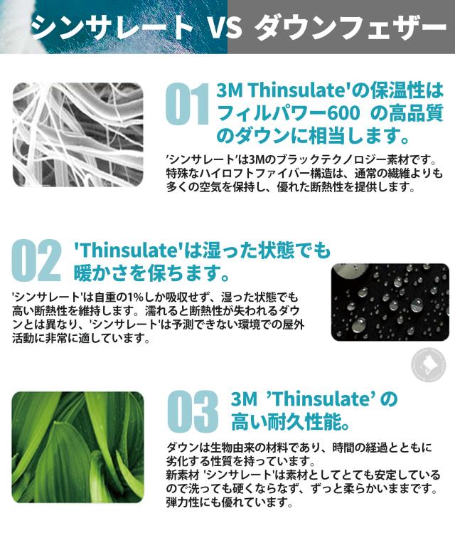 3Mシンサレートは3M社独自のテクノロジーによって開発された高級ダウンにも勝る素材です。