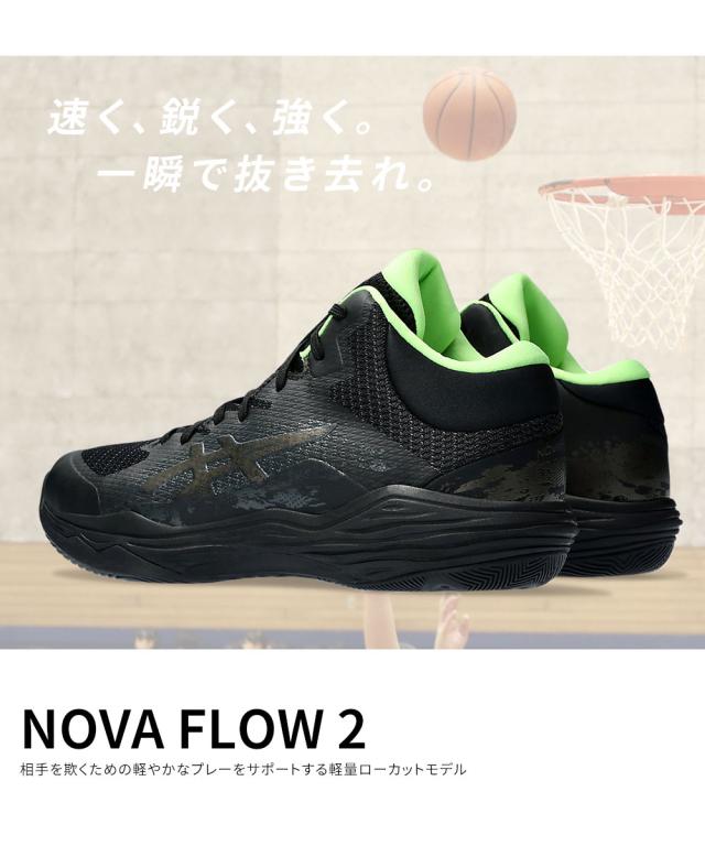 アシックス バスケットシューズ バッシュ ノヴァフロー 2 ローカットモデル メンズ レディース ウィメンズ 小さいサイズ 大きいサイズ バスケットボール バスケ ジム 室内履き 体育館 シューズ 運動靴 スポーツブランド 紐 男性 女性 黒 ブラック asics NOVA FLOW 2 1063A071
