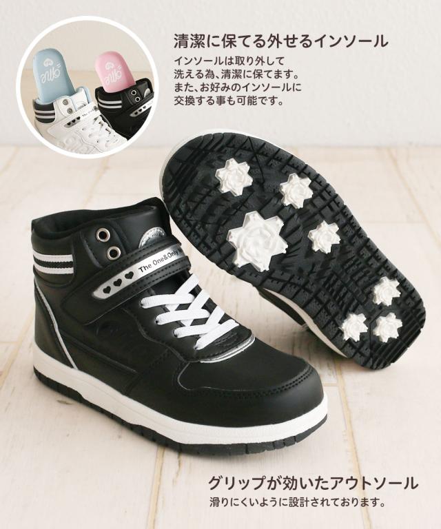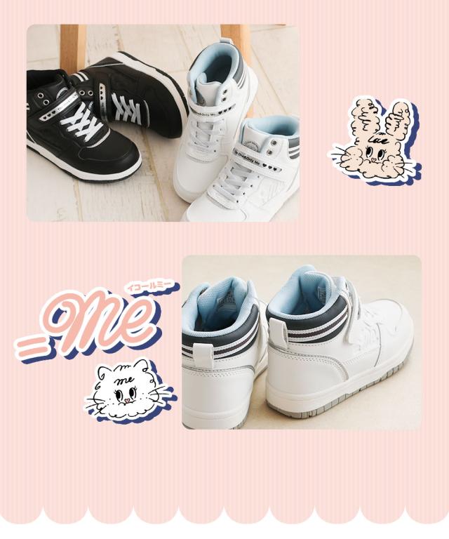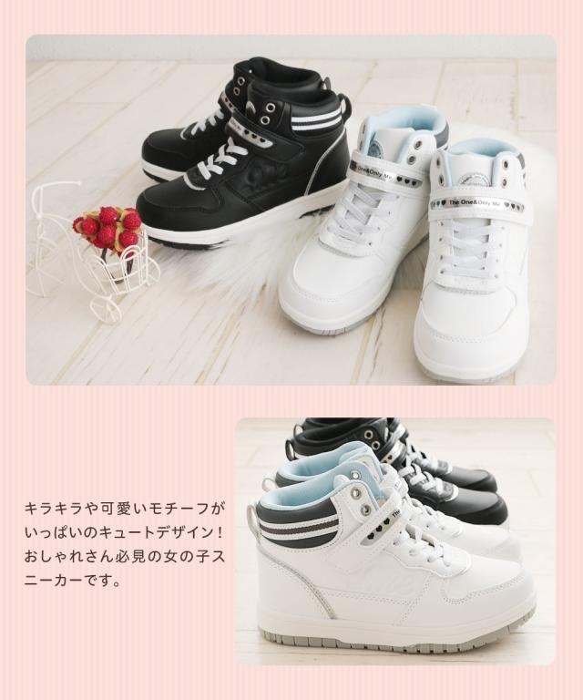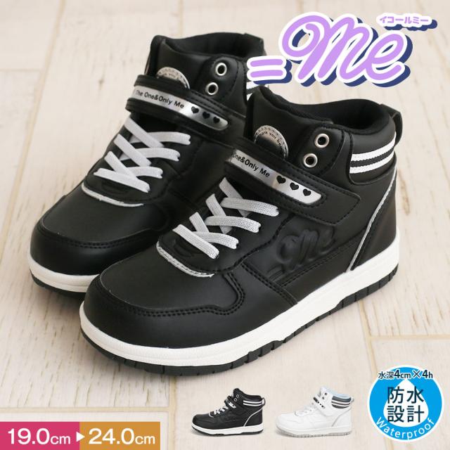 イコールミー 子供靴 スニーカー 女の子 キッズ ハイカット 防水 防滑 ジュニア 軽量 運動靴 キッズシューズ おしゃれ キラキラ かわいい ガールズ キッズスニーカー 白 黒 ホワイト ブラック 軽い ゴム紐 小学生 通学 =me 3748