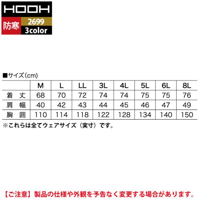 村上被服 HOOH 鳳凰 作業服 防寒着 2699 防寒ベスト 4L-5L 秋冬