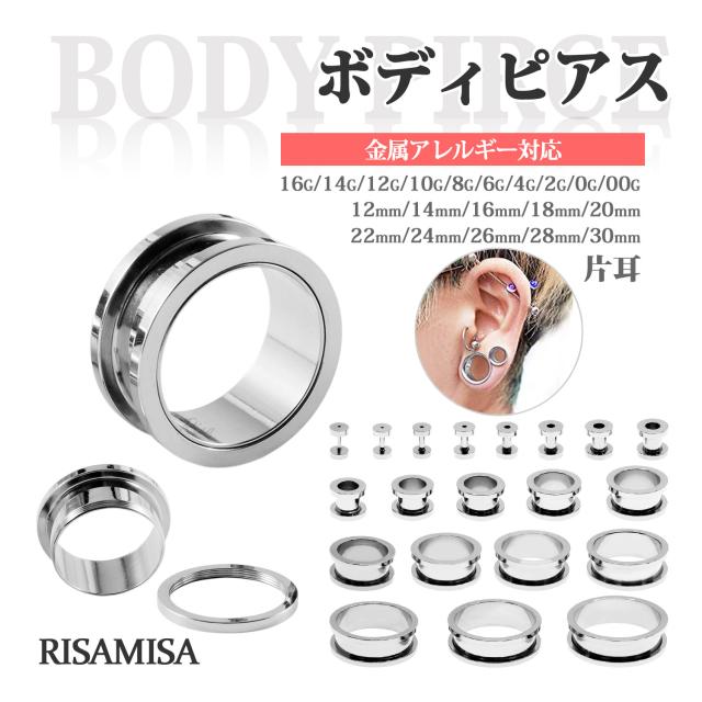 ボディピアス フレッシュトンネル 拡張 金属アレルギー対応 片耳 サージカルステンレス メンズ レディース 16G - 30mm 耳たぶ