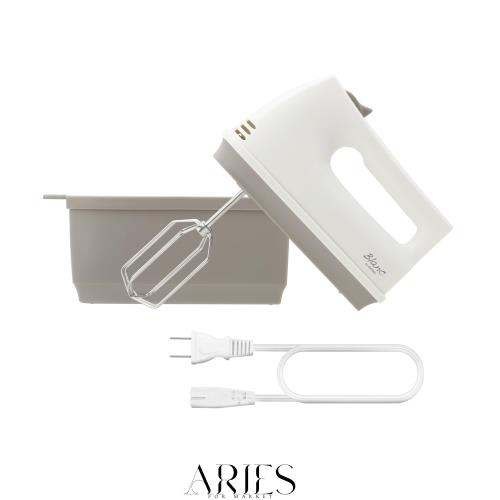 【製品仕様】商品サイズ:約W212×D83×H183mm (ケース収納時)、商品重量:約820g (収納ケース・電源コード・ビーター含む)、電源:AC100V 50/60Hz共用、速度調節:5段スピード、定格消費電力:120W:10分、電源コード長:約1.7m