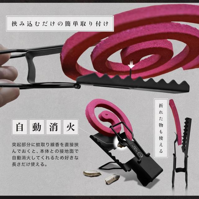 【消火も簡単】消したい場所でクリップに挟むと自動で消火するので、蚊取り線香の無駄遣いを防ぎます。