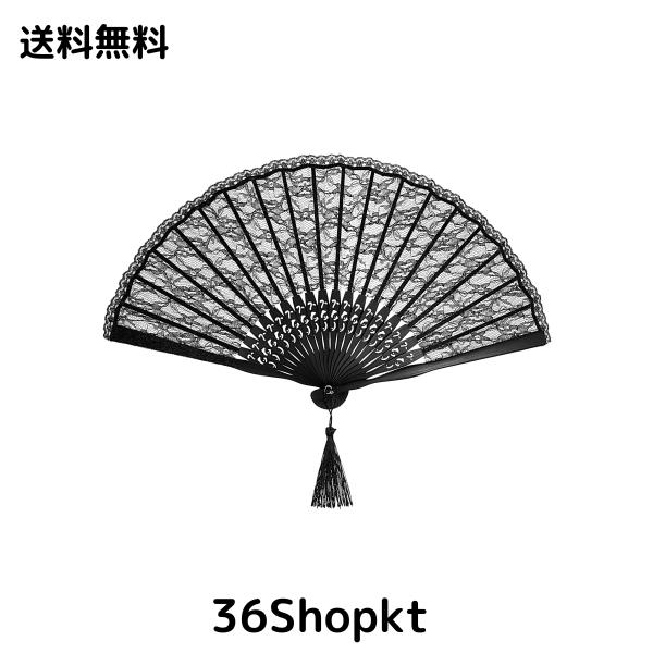 EXCEART 扇子 レース 黒 天然竹 折り畳み 和風 お祭り 花火大会 夏 おしゃれ 手持ち プレゼント