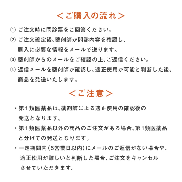 ・第1類医薬品は、薬剤師による適正使用の確認後の発送となります。