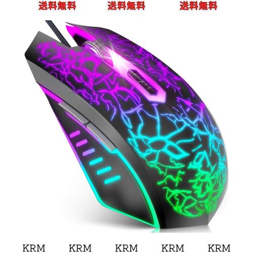 VersionTECH. ゲーミングマウス 有線 光学式マウス 7色 RGBライト 高精度 4段DPI調節可能 6つプログラムボタン USB接続 ゲームマウス 軽