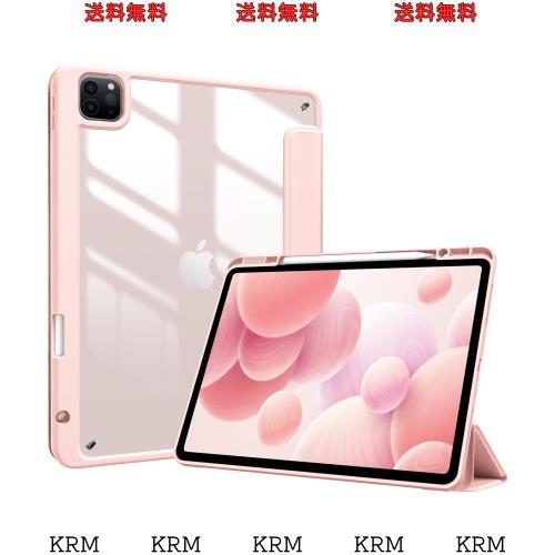 iPad Pro 12.9 ケース 第6/5/4/3世代に適用(2022 2021 2020 2018) 透明 クリアバックカバー ペン収納 耐衝撃 三つ折り スタンド スマートカバー