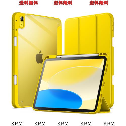 JEDirect iPad 10 ケース(10.9インチ、2022モデル、第10世代用) Pencil収納可能 透明バックカバー 薄型 スタンド 衝撃吸収 タブレット