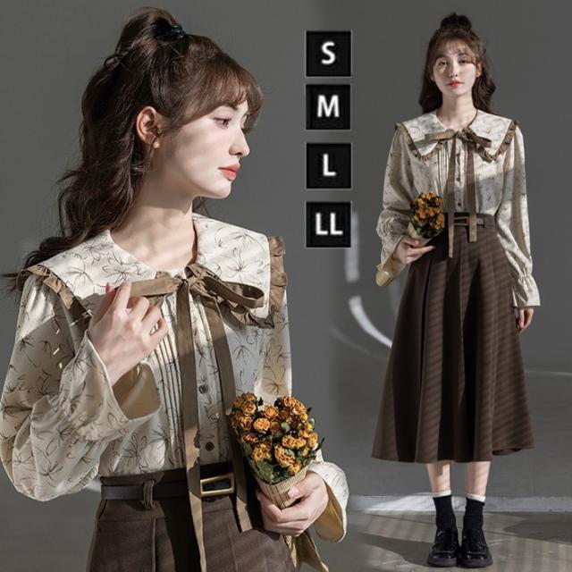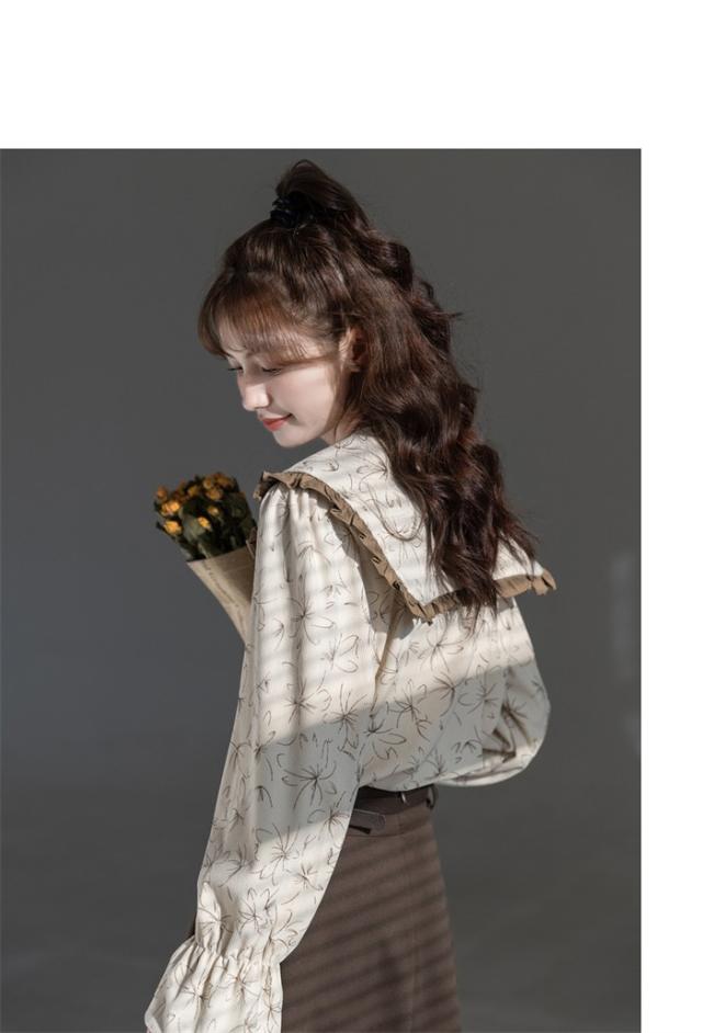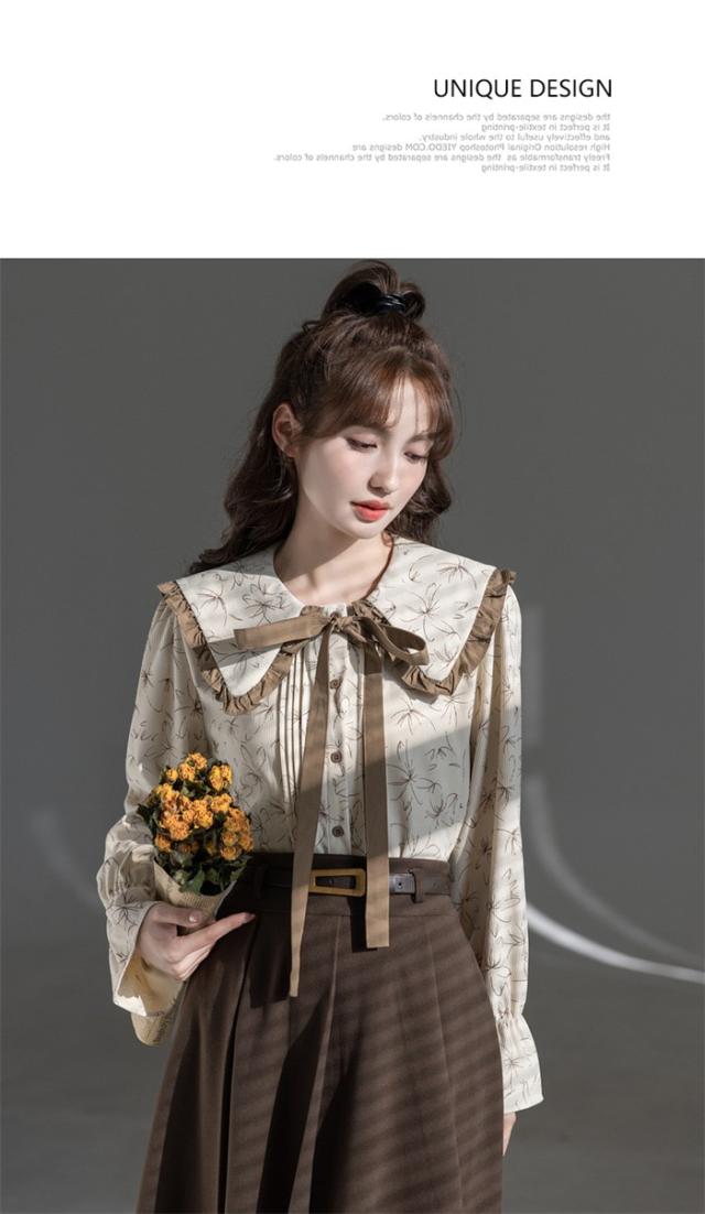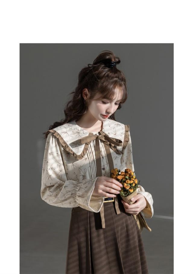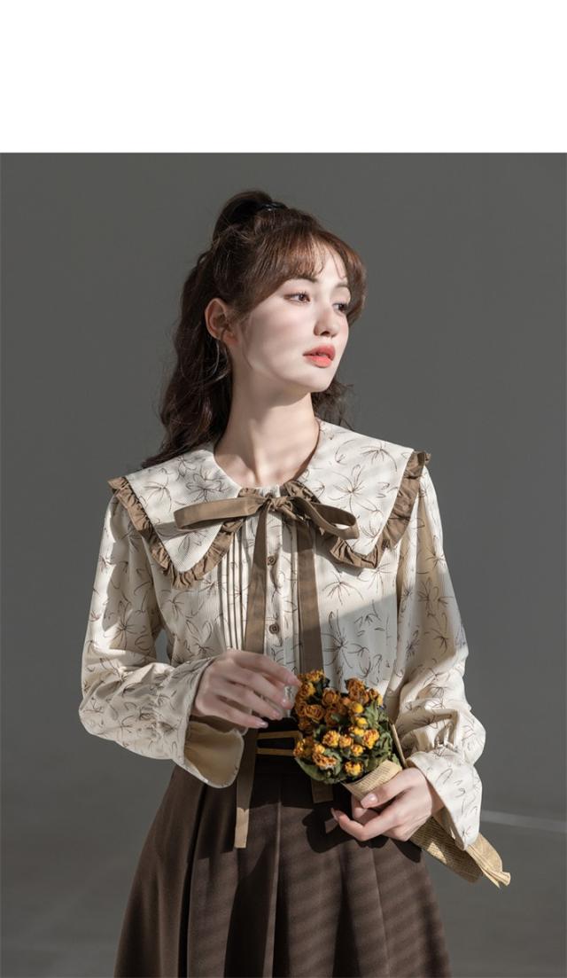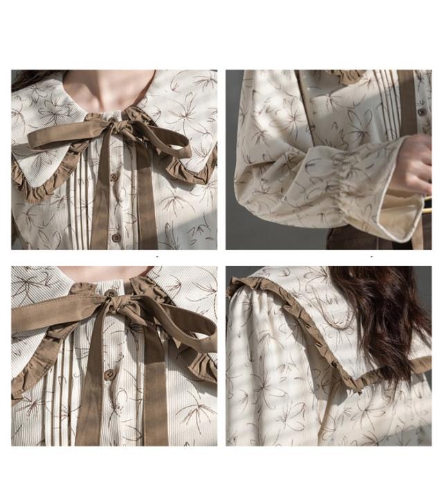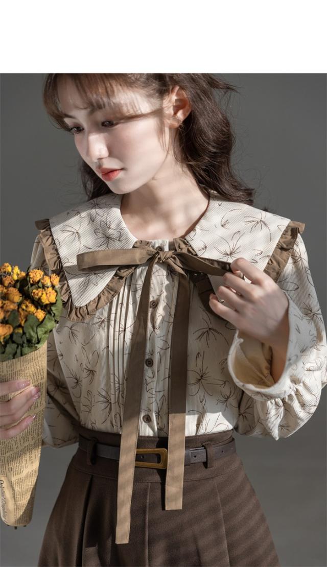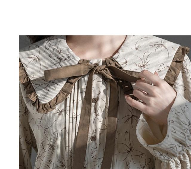 ビッグカラー ブラウス 柄 フリルカラー 襟 シャツ レディース リボン トップス 大人 長袖シャツ ボリューム袖 ゆったり 秋 冬 春 xz121d7cyxq
