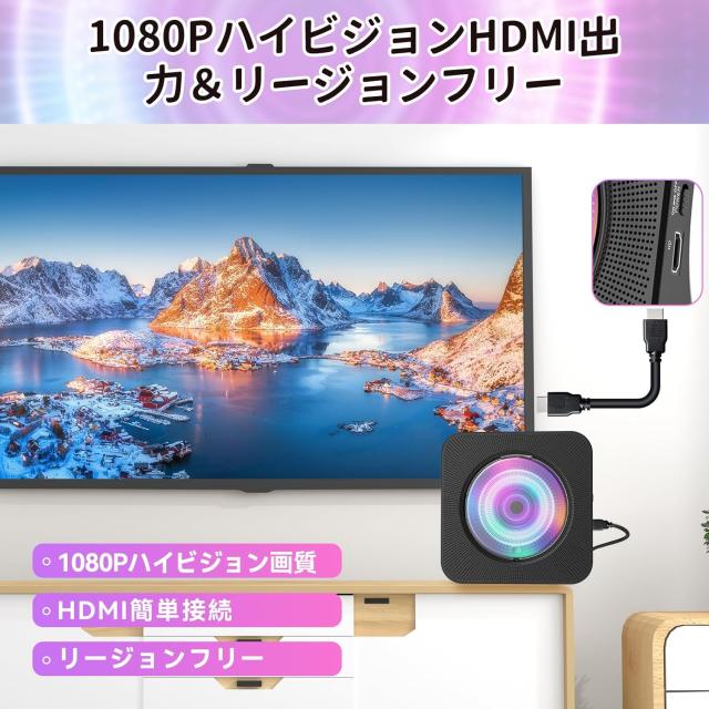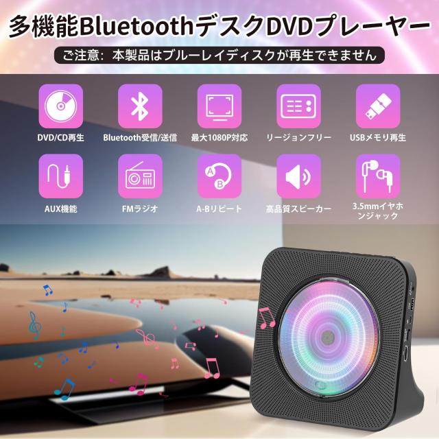 DVD/CDプレーヤー デスク HDMI出力対応 最大1080P対応 リージョンフリー DVDプレイヤー Bluetooth対応 スピーカー内蔵 リピート再生