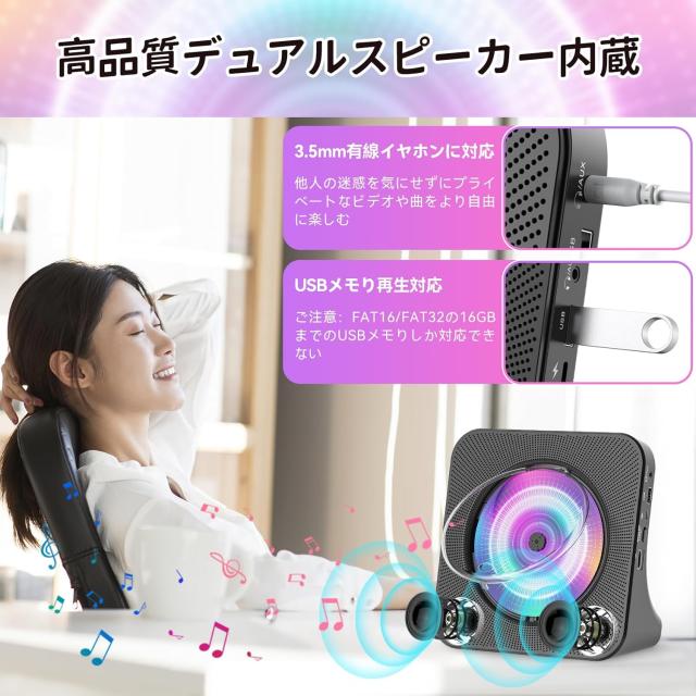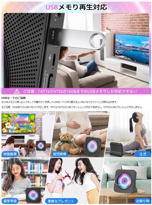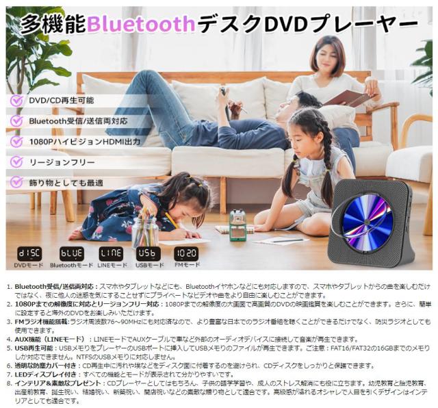 本製品はDVD/VCD/CD/CD-G/HD-CD/WMA/AVI/MP3/JPEGなど様々なディスクとファイルに対応した幅広く使えるディスクDVD/CDプレーヤーで、家、部屋、喫茶店、教室、レストラン、パーティー、集まり、飲み会など多くなシーンにも適用されます。