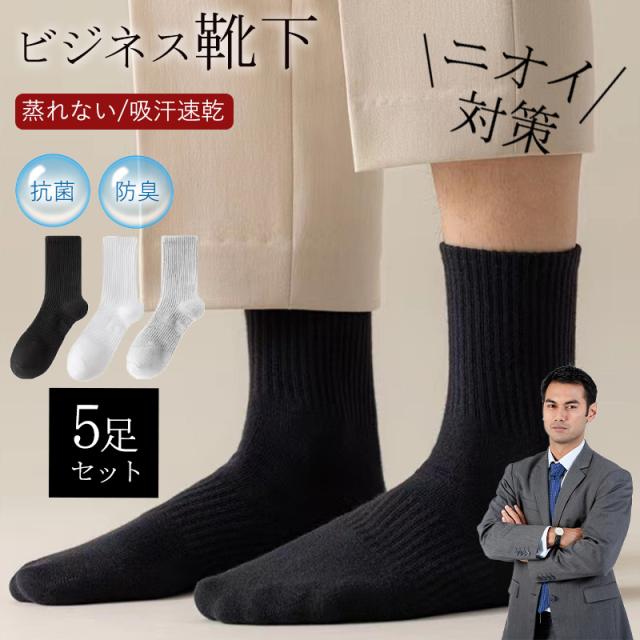 靴下 メンズ 5足セット ソックス くつした くつ下 紳士 黒 ビジネス 無地 レギュラーソックス 蒸れない 吸汗速乾 抗菌 消臭