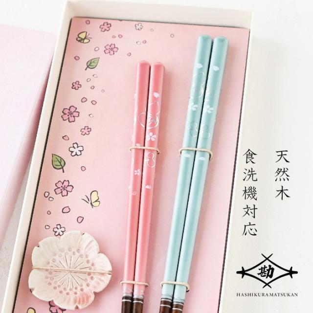 若狭塗 夫婦箸 桜ひさご ペア 清水焼箸置付 S-82030 ペア箸 塗り箸 食洗機対応 敬老の日 母の日 父の日 プレゼント